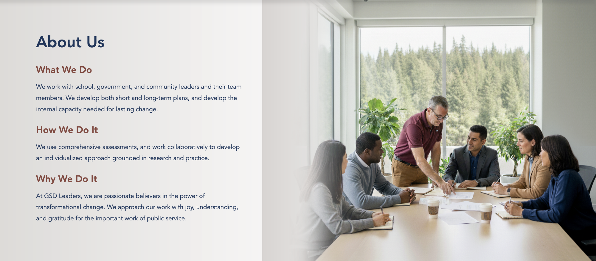 GSD Leaders partners with schools, government, and community organizations to provide leadership coaching, strategic planning, and project management support.