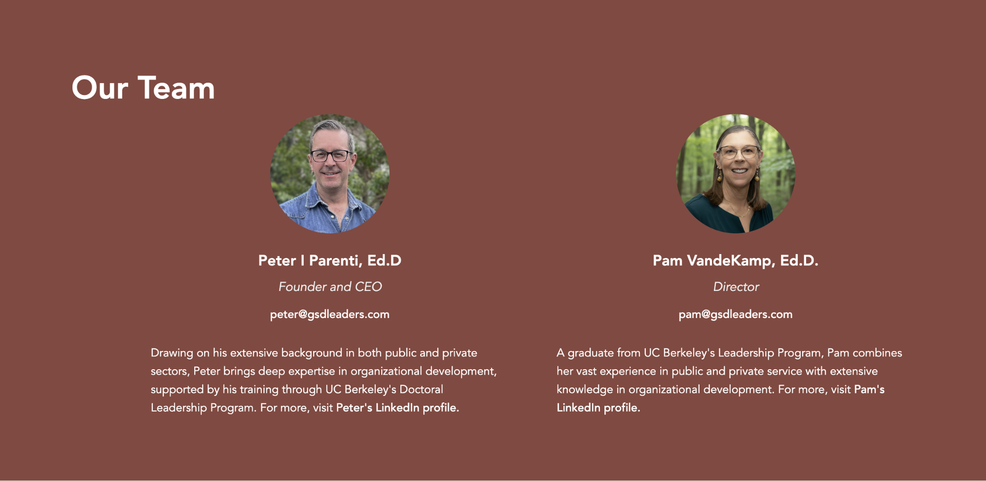 Friendly presentation of leadership and team members builds trust with visitors.